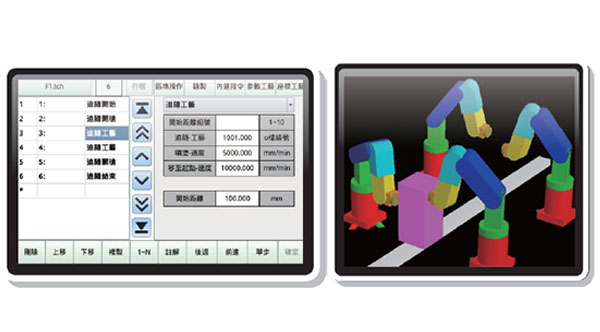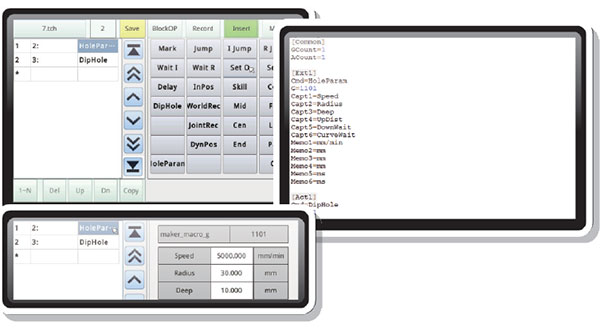 Apply to "program export" function to integrate"teach-ing program", "templates", " matrix" and "NC file" in the same program for operation, or according to requirement to write G code by Macro language.